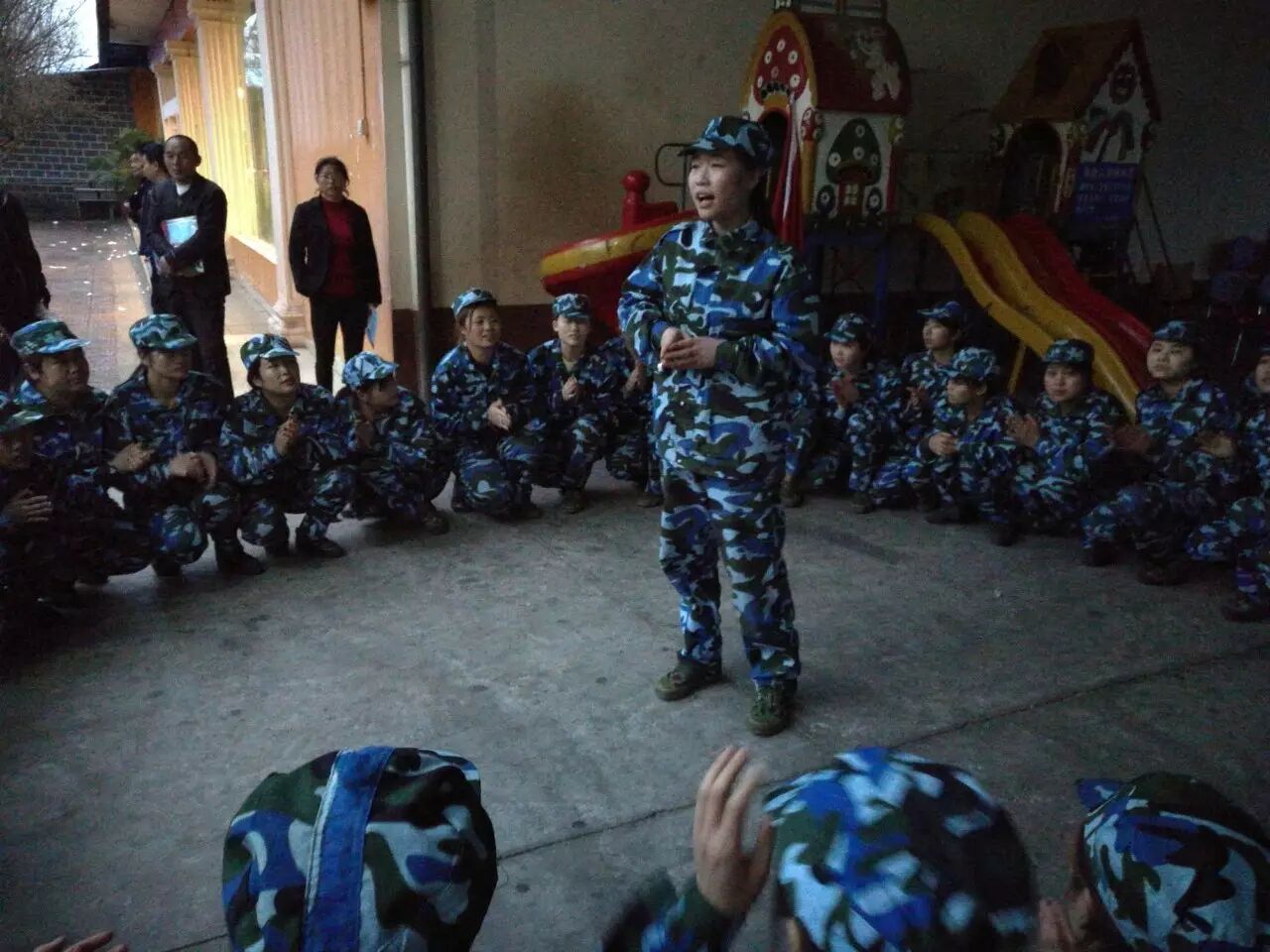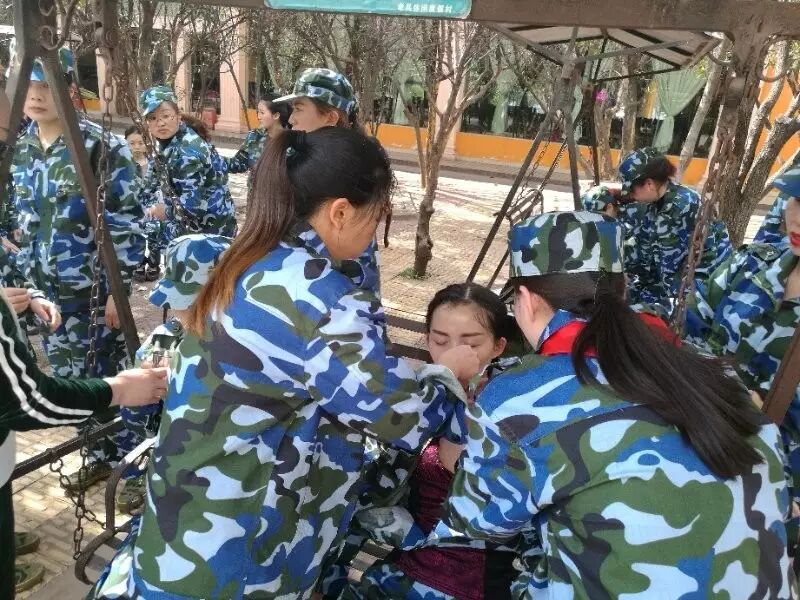 下午站军姿的时候,有40余伙伴眩晕倒地,在后勤医务人员的照顾下,很快恢复精神,又立即回到团队,为团队的荣誉而奋斗到底。