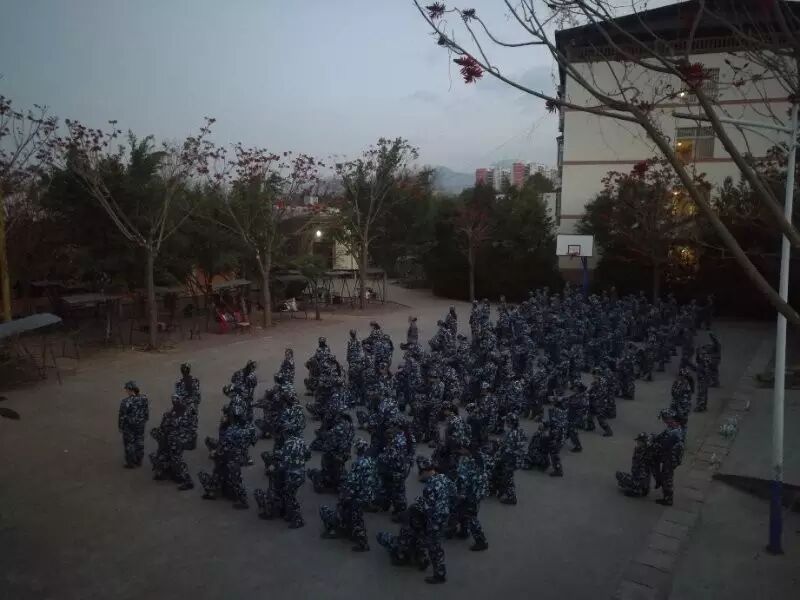 23号早上6点不到,又以飞虎队带头拉开了训练的序幕,冒着毛毛细雨,各队满怀斗志的在操场练习,直到教官下令集合。