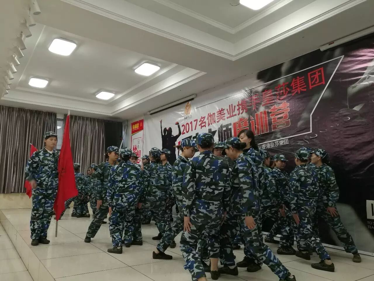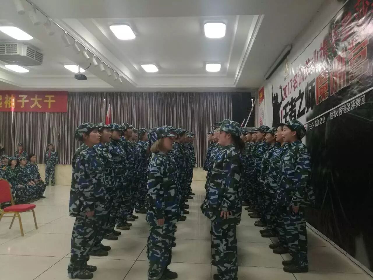 训练并没有结束,就如我们定下目标要去拼搏一样,大家为23号的团队展示PK,彻夜练习,酒店给的时间是晚上11点关门结束,而到12点大家还激情满满的练习,服务员无奈只有关下总闸,漆黑一片,但是家人们依然激情不减,打起手电练习,到了凌晨一点过,两个组基本达到训练要求。而留下的敢死队由于队长生病,临时选出新的队长,开始强化训练,并没有休息的意思,大家为了荣誉和尊严继续练习,到凌晨3点钟才结束。