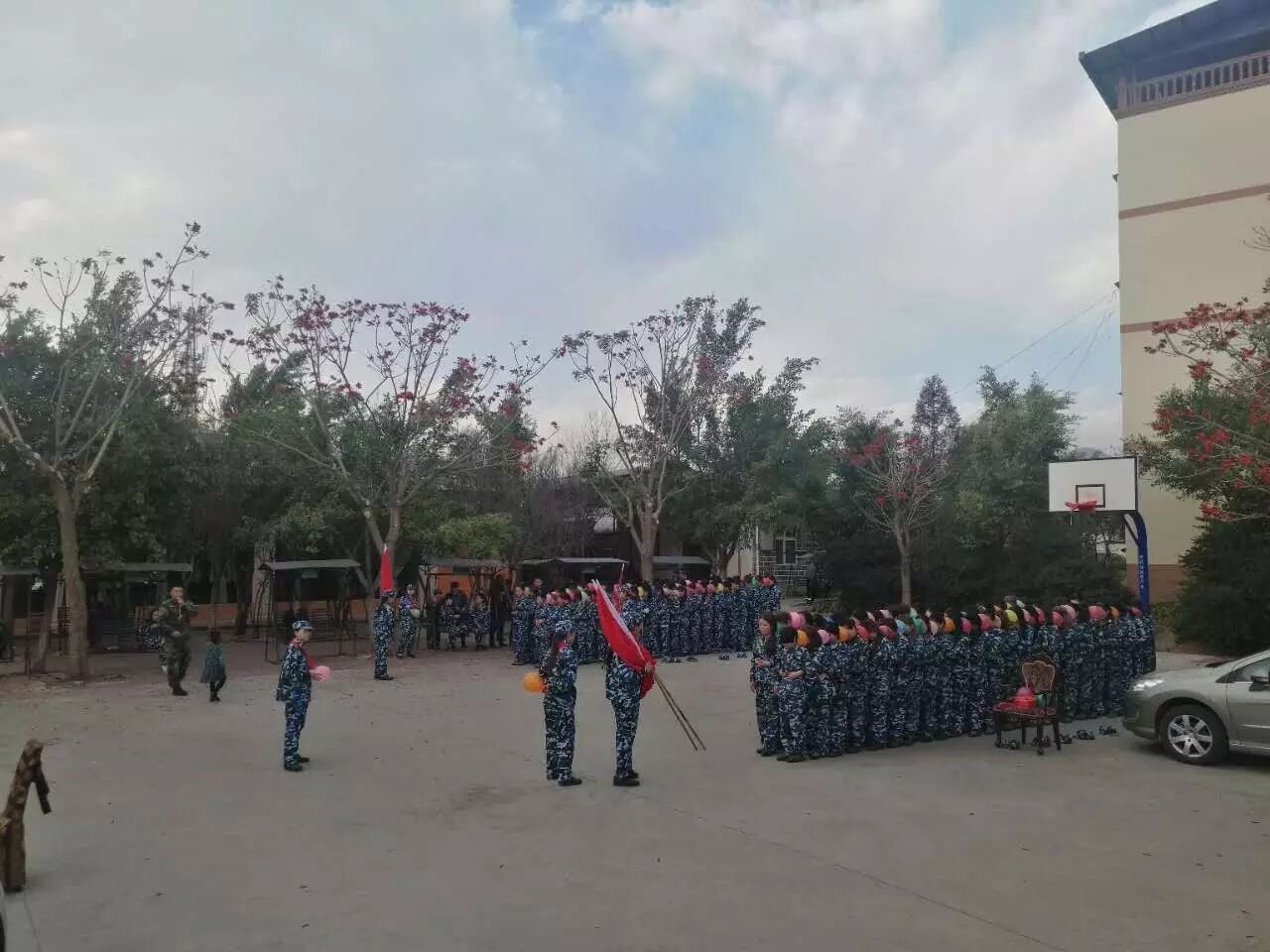 虽然很多家人是坐了一晚上的车,一到基地就开始投入训练,但是从早上9点到晚上一点半大家都全力以赴、坚持不懈、浴血奋战,终于完成当天的授旗仪式。