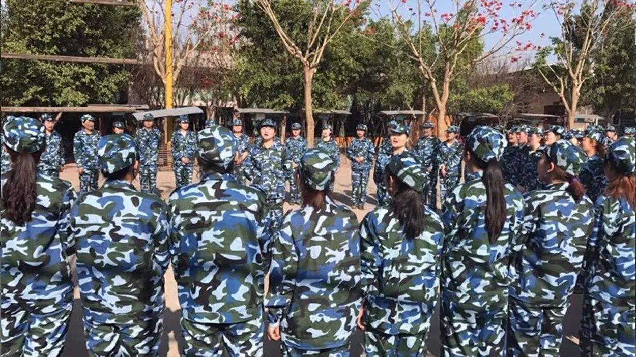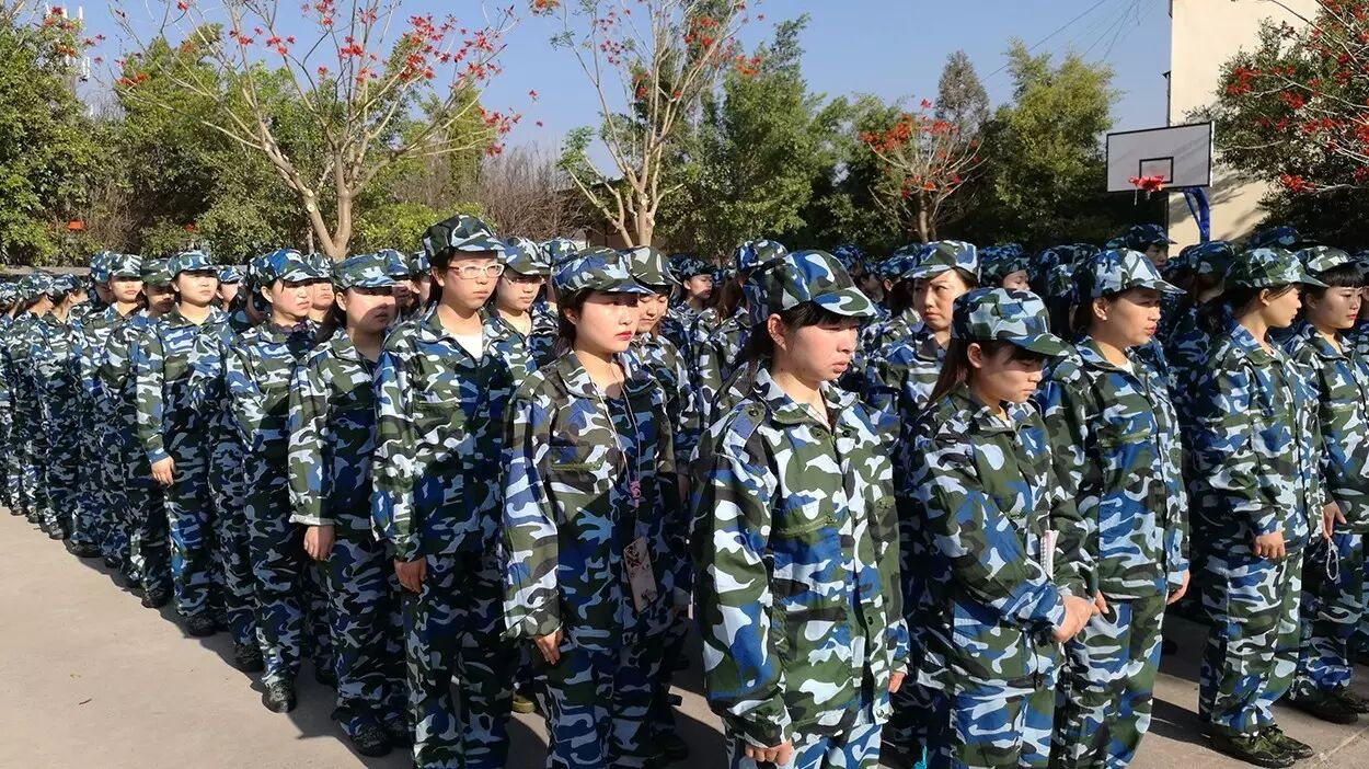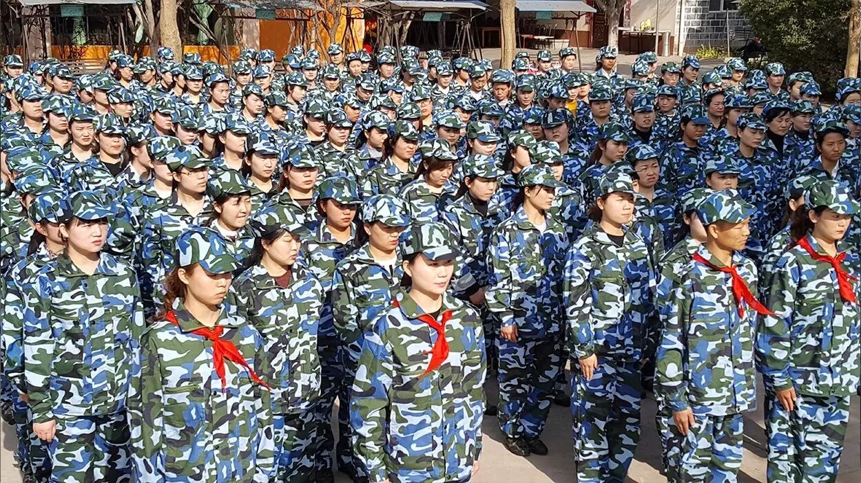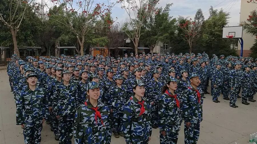 在教官的哨声中,大家整齐的屹立在操场,开始训练,声音洪亮,动作整齐,震撼全场。